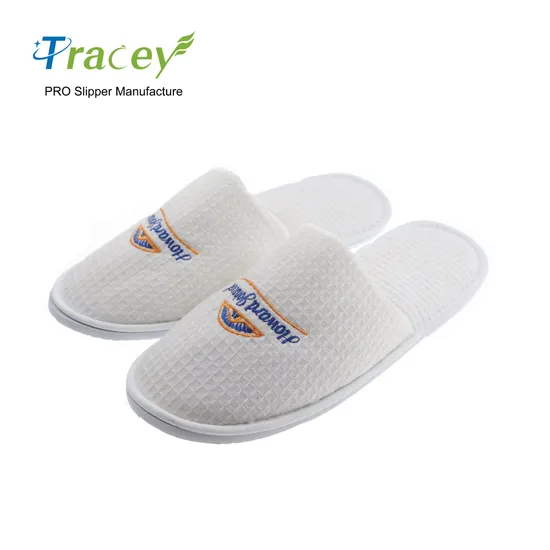 Custom Wholesale Luxury Bedroom Waffle Adult Travel Sizes Cotton Guest Disposable White Hotel Slippers with Logo